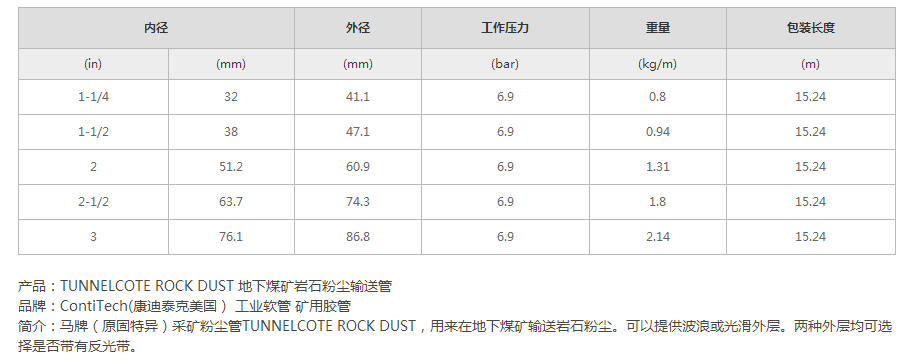 TUNNELCOTE ROCK DUST 地下煤礦巖石粉塵輸送管