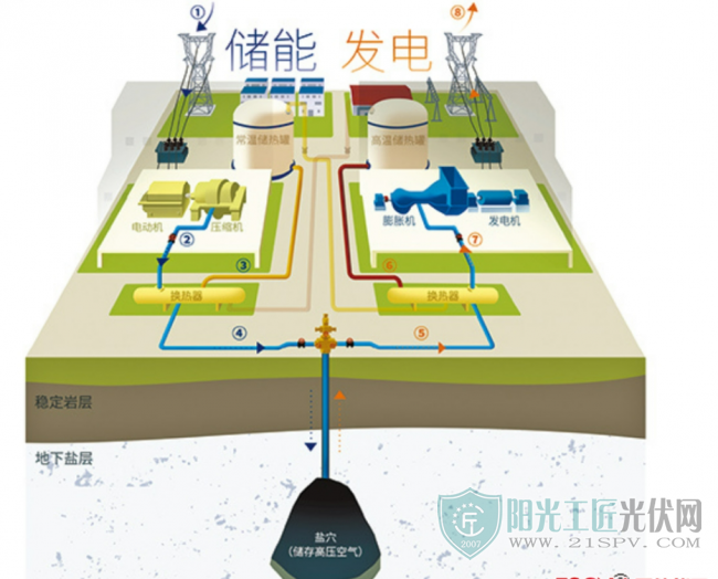“在用電低谷時把空氣壓縮,存儲在地下鹽穴,完結一次充電的周期為8小時;在用電頂峰時,開釋高壓空氣,每小時能發(fā)電6萬千瓦時,能夠接連發(fā)電5個小時,發(fā)電量可達30萬千瓦時。”韓月峰介紹。